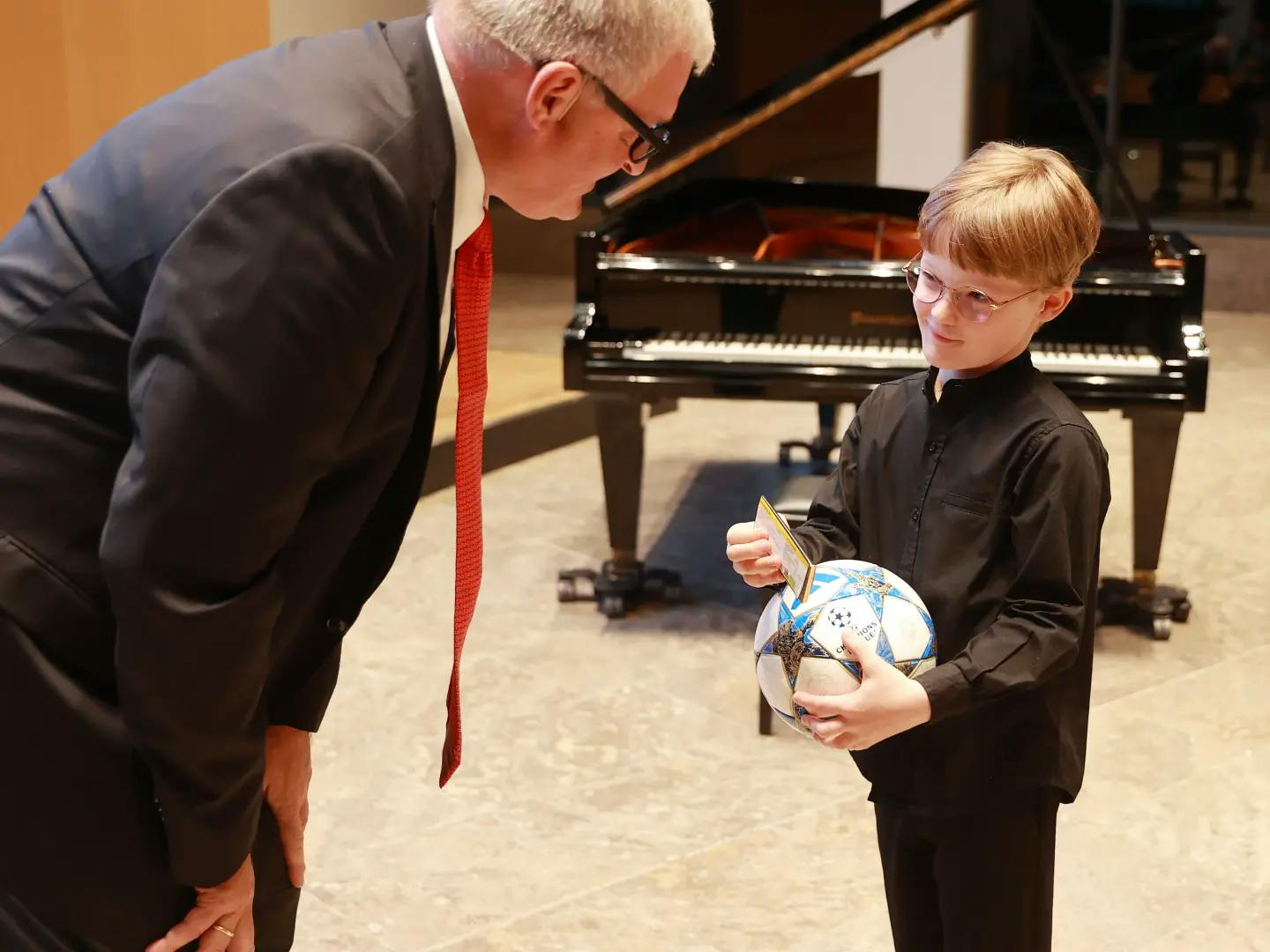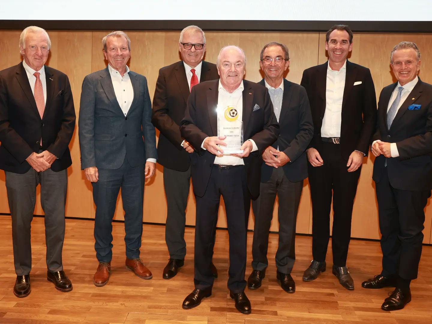 Die Verleihung des Goldenen Volltreffers 2025 der Stuttgarter Prominentenkicker an Dr. Eduardo Garcia für außergewöhnliche Verdienste im sozialen und sportlichen Bereich für Stuttgart, die Region und darüber hinaus, war am 28. Oktober 2025 ein imposanter Festakt. Alles stimmte, schon der repräsentative Ort der Verleihung, der große Sitzungssaal des Stuttgarter Rathauses, in den 120 Prokis und Freunde gekommen waren, dann die beeindruckende Musikbegleitung, der erst siebenjährige Friedrich Loeb spielte drei Mal am Klavier bekannte Stücke von Mozart, Bach und Chopin und ließ die Prokis vor Begeisterung kaum noch auf ihren Sitzen weilen. Der siebenjährige Friedrich Loeb ist ein Wunderkind und nicht nur am Klavier, er geht schon in die vierte Schulklasse, unser Vizepräsident Michael Russ stellte den jungen Pianisten vor und erwähnte zahlreiche Auszeichnungen, die er heute schon vorweisen kann.