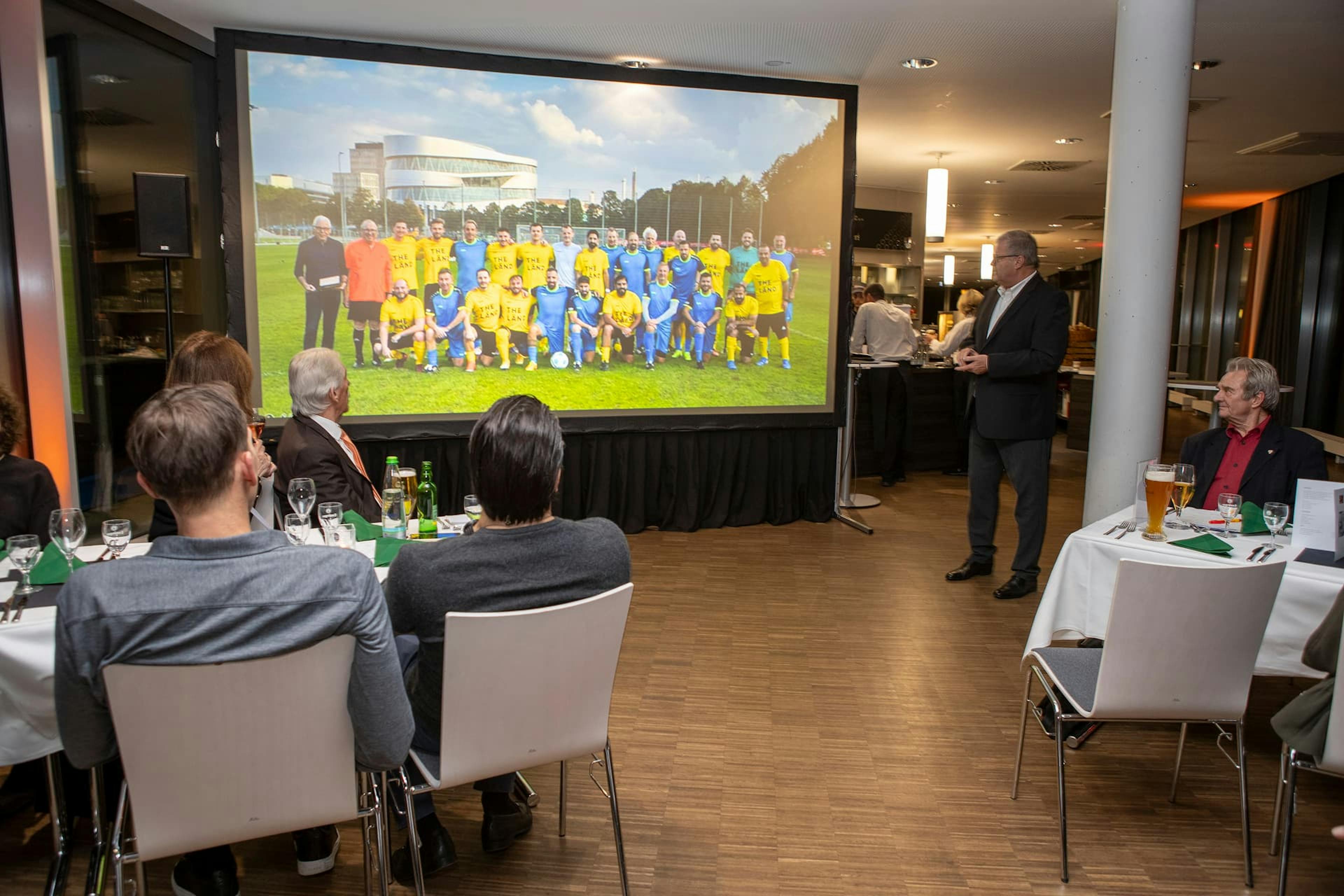 Unseren sportlichen Jahresabschluss 2025 mit allen Daten und Bilanzen feierten wir dieses Jahr zusammen mit der Verleihung des Stuttgarter Rössles im VIP-Raum des GAZI-Stadions in Degerloch, Mitte Dezember. Dort bejubeln normal die VIP-Gäste der Stuttgarter Kickers ihre Kickers-Siege, da diese Triumphe aber in letzter Zeit nicht dauernd stattfinden, war der Caterer dieser Räume unser Proki-Mitglied Michael Schmücker zufrieden, dass er mit seinen Gästen, dieses Mal den Stuttgarter Prominentenkickern nur Sieger anwesend hatte. Unser Proki-Präsident Dr. H.-U. Jelitto ließ in seinem Begrüßung-Vortrag mit schönen Bildern das Proki-Jahr 2025 Revue passieren und er ging auf alle Proki-Untergruppen ein, neben den Fußballern, die Wanderer, die Golfer und die Leichtathleten.