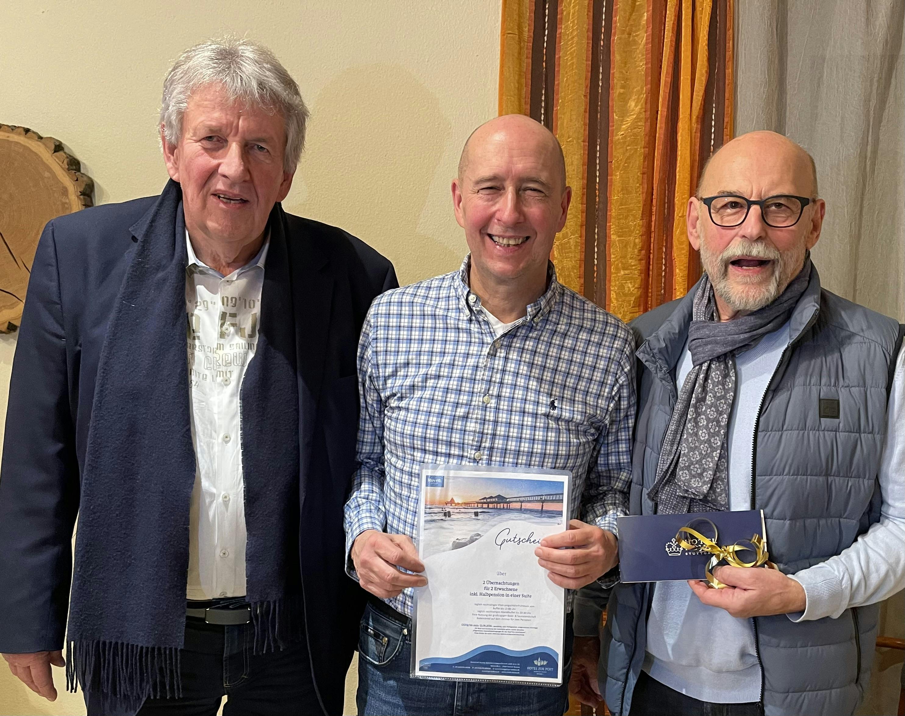 Es wurde gereizt, geklopft und vor allem viel gelacht: Nach knapp fünf Stunden war die Entscheidung gefallen. Der Stuttgarter Restaurantfachmann Michael Wössner behauptete sich gegen die stark auftrumpfende Konkurrenz und wurde nach 54 Spielrunden zum ersten Mal mit dem Siegerpreis, einem Reisegutschein für das Kaiser SPA Seebad Bansin auf die Sonneninsel Usedom belohnt. Der 60-jährige aus dem Stuttgarter Süden gehört übrigens zum Kreis der „Stuttgarter Bockrunde“, dem 1952 gegründeten ältesten Skatclub Baden-Württembergs. Mit dem 2. Platz sicherte sich Klaus Zinnecker zwei begehrte Tickets als Vorfreude auf das Konzert „The 12 Tenors“ am 27.12. im Beethoven-Saal der Liederhalle. Zwei „Royal Menüs“ im gleichnamigen Stuttgarter Traditionshotel warten demnächst auf den Drittplatzierten im Klassement, Harry Braun. Große Freude gab es aber auch bei allen übrigen Turnierteilnehmern, die sich am reichlich gedeckten Gabentisch mit Sachpreisen oder edlen Wein- und Sektspenden bedienen durften.