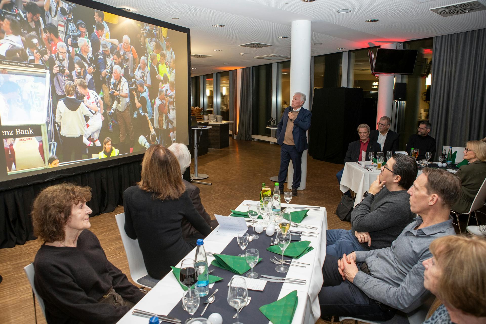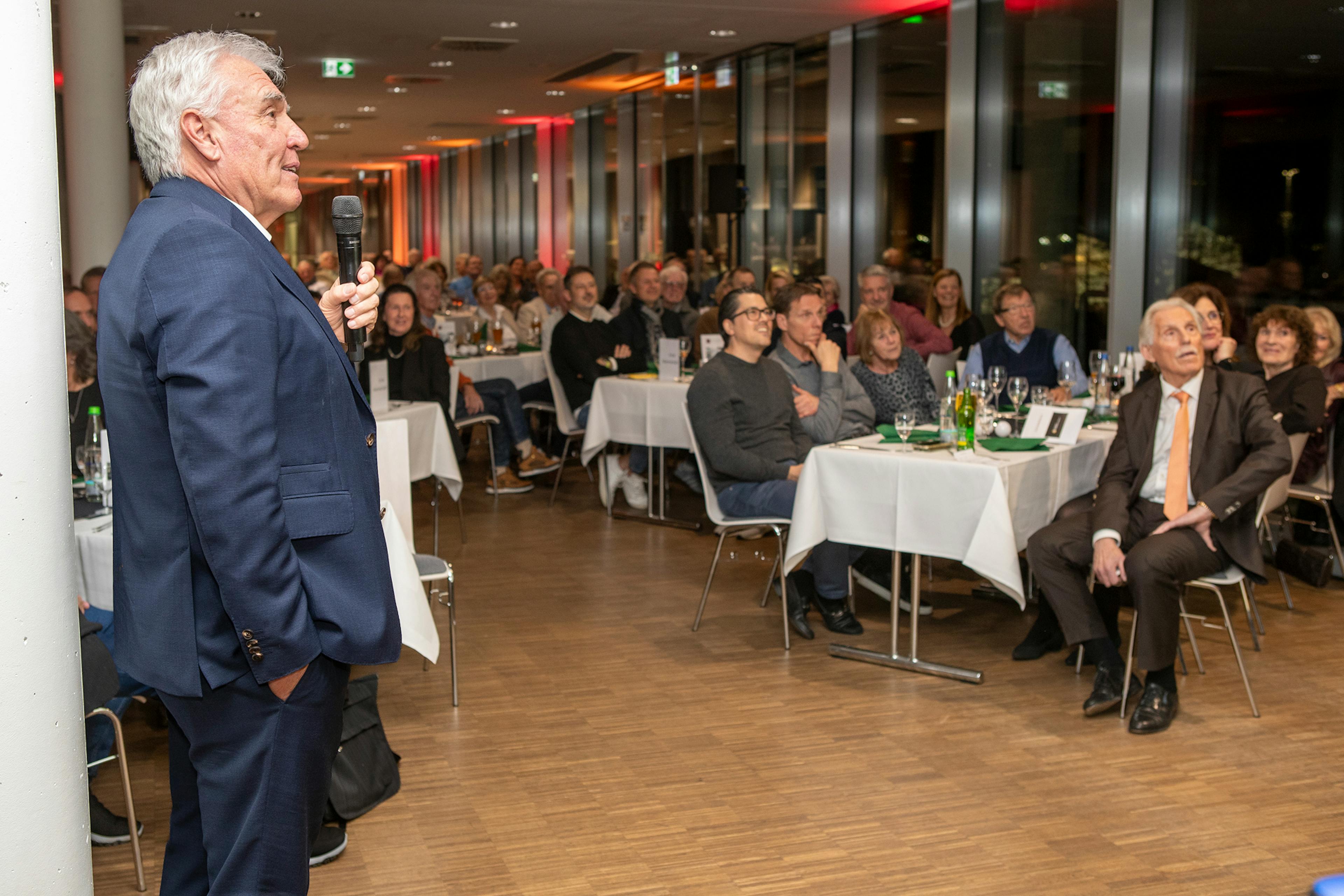 Die Tatsache, dass wir den Stuttgarter Sportjournalisten Carlos Ubina (StZ) als Laudator für Herbert Rudel gewinnen konnten, machte die ganze Preisverleihung noch sympathischer. Carlos Ubina arbeitete jahrelang mit Herbert Rudel bei der Esslinger Zeitung zusammen und kennt ihn, wie kein anderer. Was der große Schreiber Carlos Ubina erzählte, war authentisch und vermittelte den 100 anwesenden Prokis, was Herbert Rudel für ein toller Mensch ist. Dies beeindruckte Herbert Rudel so stark, dass er bei seiner Dankesrede den Tränen nahe war. Alle Prokis waren sich einig: die Stuttgarter Prominentenkicker haben 2025 den richtigen Preisträger für das "Stuttgarter Rössle" gefunden, Herbert Rudel war der Auszeichnung würdigte, der Laudator Carlos Ubina verstärkte dies mit seiner Lobrede und der lang anhaltende Applaus der Anwesenden bestätigte dies nochmals.
