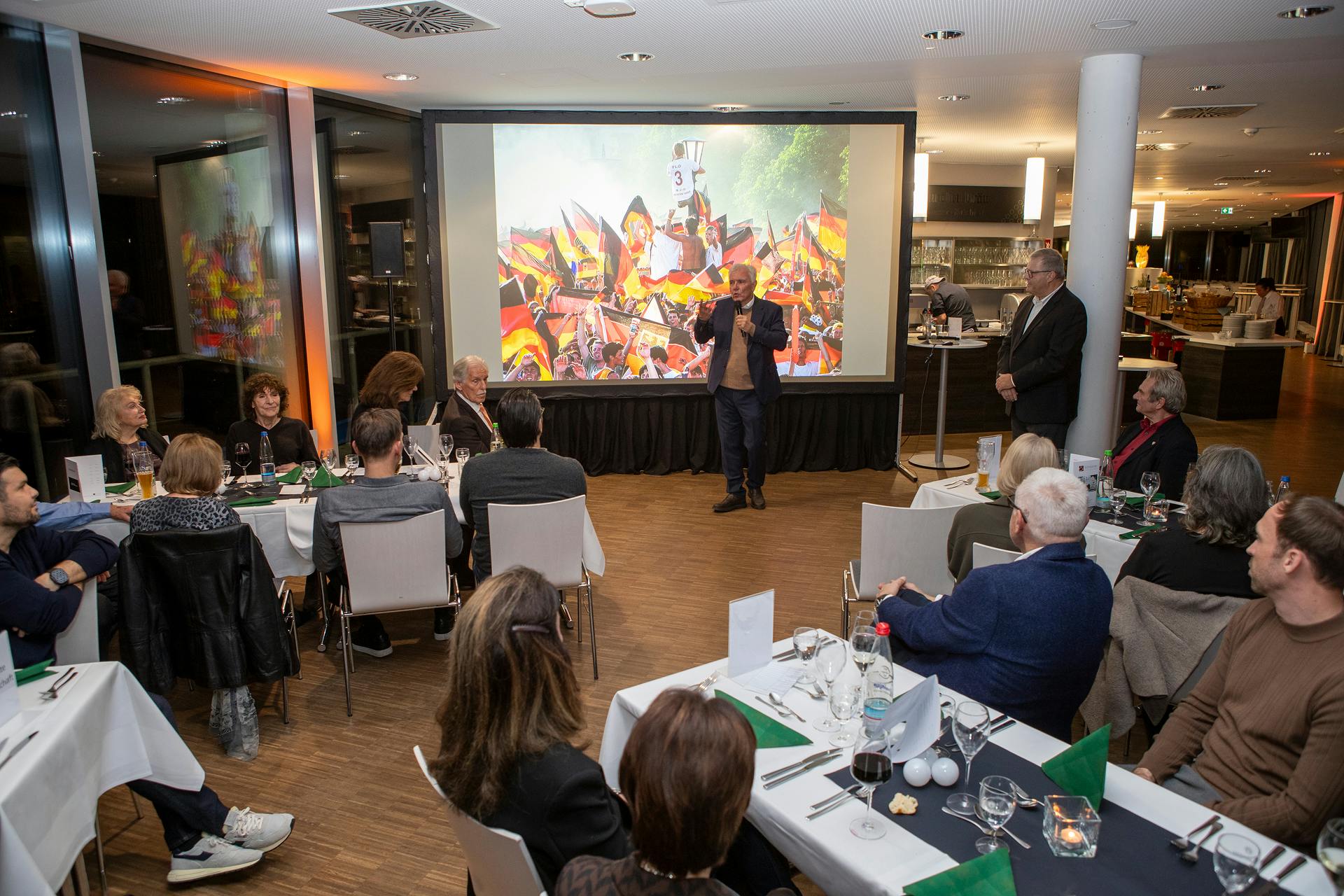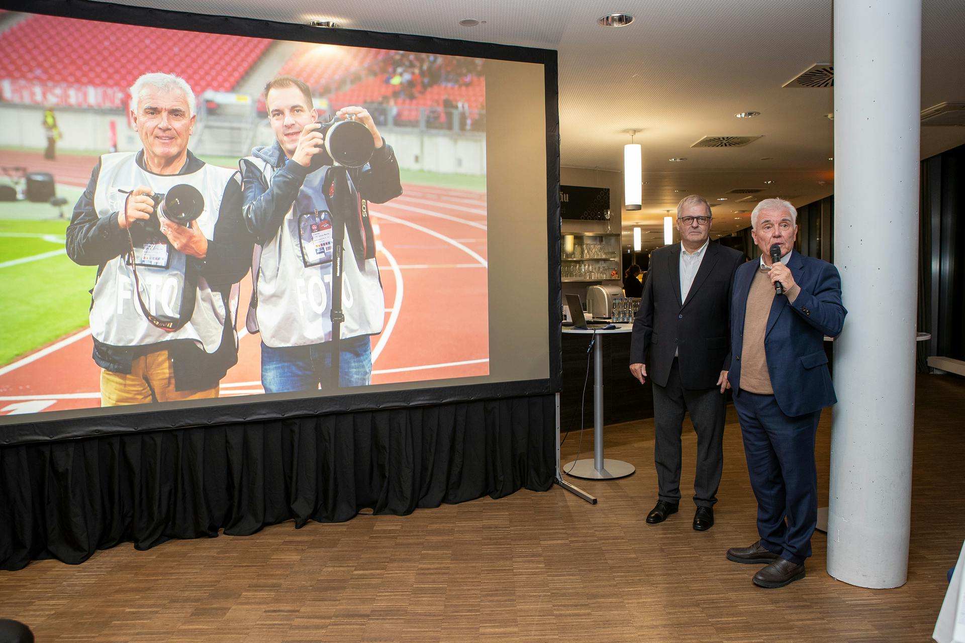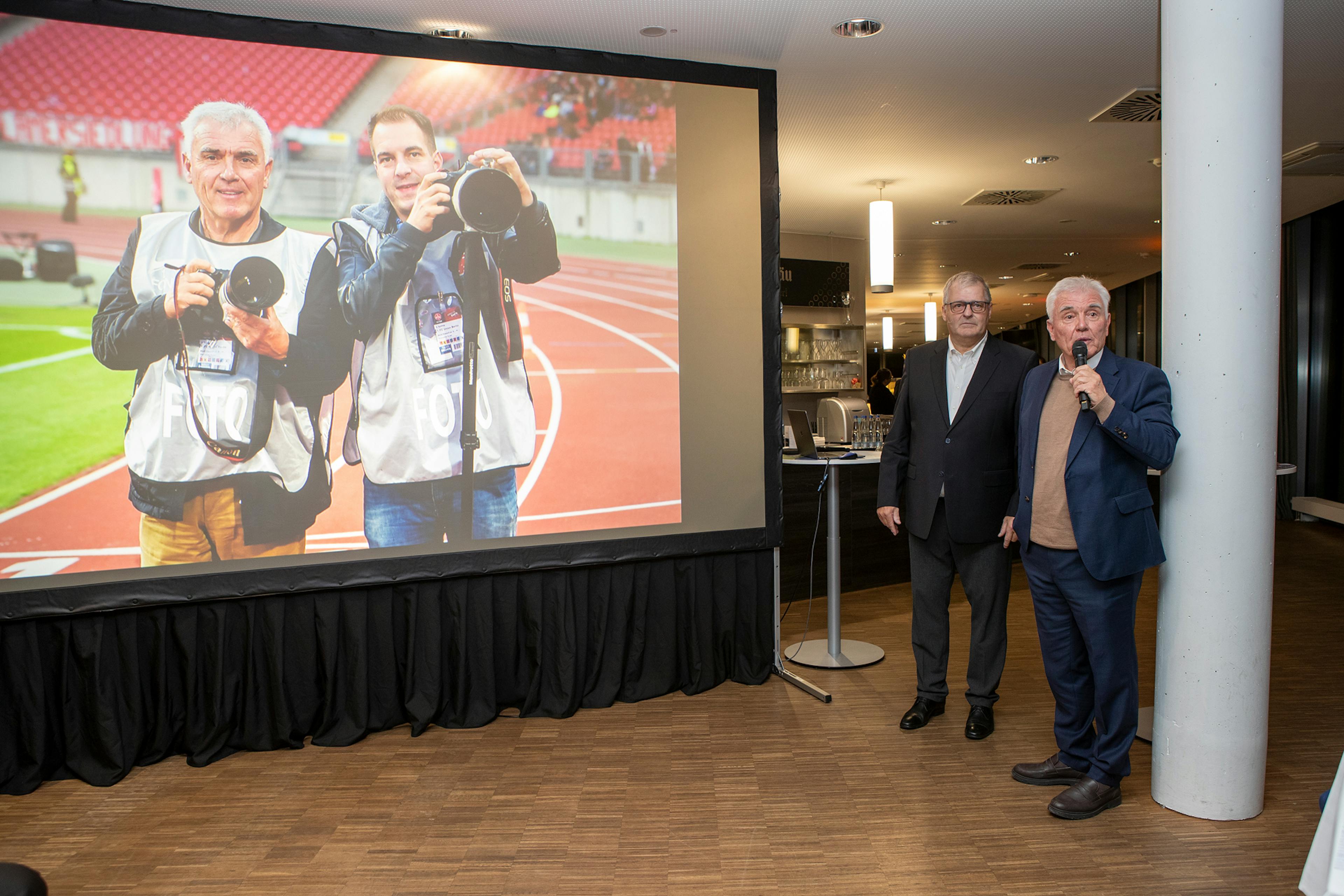In den zahlreichen Bildern, die bei seiner Preisverleihung im VIP-Raum des GAZI-Stadions gezeigt wurden, konnte dies eindrucksvoll zum Ausdruck gebracht werden. Herbert Rudel hat mehrere Preise für das Foto des Jahres erhalten, das berühmteste wohl von 2006, als er bei der WM in Deutschland auf dem Stuttgarter Schlossplatz, wo über Hundert Tausende Fans mit Deutschland-Fahnen ein Deutschland Tor bejubelten, abdrückte (ein Fan hängt über einer Lampe am hohen Ständer mit dem T-Shirt: "wir sen die, wo g `winne wellet"), aber auch Bilder mit großen Fußballern wie Maradona, oder VfB-Spielern wie Giovane Elber, Karl-Heinz und Bernd Förster, Krasimir Balakov, Guido Buchwald, usw.